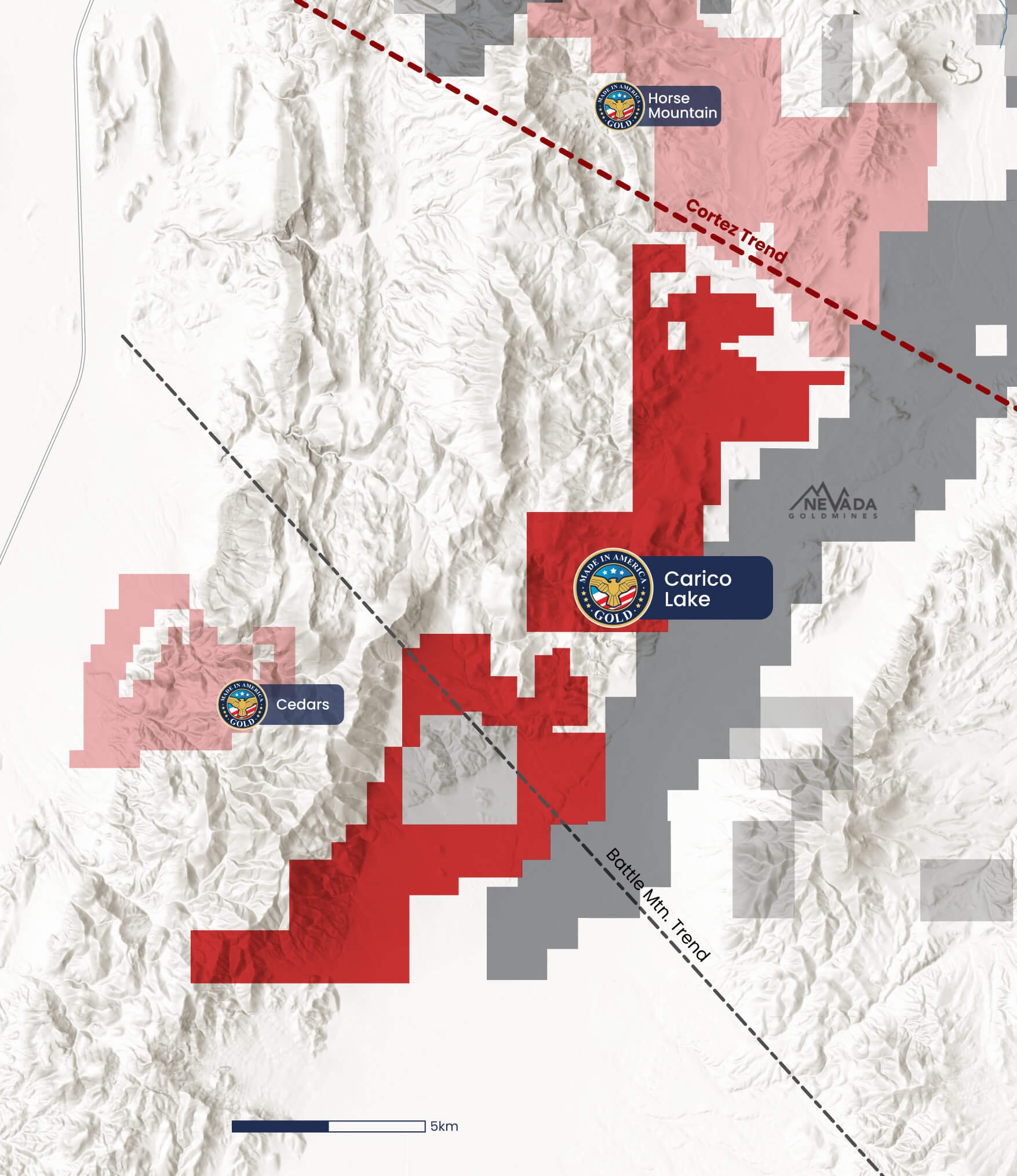 Claim blocks straddle a NE-trending gravity high that heads towards the Horse Mountain Project. Intersection of NE-trending structures and WNW trending Caetano Caldera margin is an attractive exploration target.